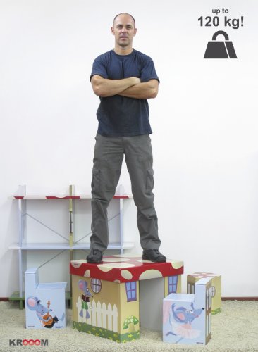 - Il set, composto da un tavolo e due sedie abbellisce la cameretta e crea spazio per disegnare o giocare insieme. Lo sgabello può sopportare fino a 100 kg e si può spostare sotto il tavolo in modo da non occupare spazio.