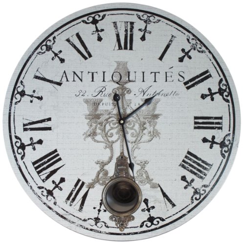 - 58 cm^Orologio in bianco e nero con numeri romani e caratteri decorativi^Si adatta a qualsiasi stanza della casa o dell'ufficio^Completa di un pendolo visibile all'interno dell'orologio