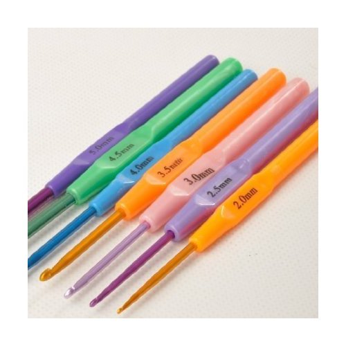 Pacco da 7 Uncinetti Metallici Col Manico di Plastica 2-5mm Di Curtzy