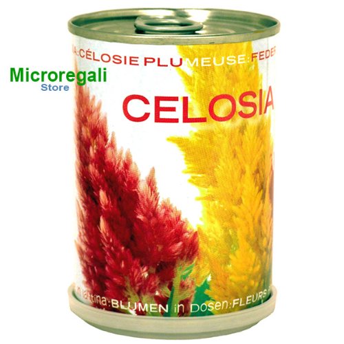 MICROGIARDINI Fiori in Lattina made in Italy è un'idea sviluppata e realizzata in Italia, semplice e di facile uso; la lattina con il doppio coperchio a strappo contiene i semi della Celosia ed una miscela di terriccio ricco di nutrimento, che rende possibile una volta "stappate" le lattine, sopra e sotto, bagnate con acqua, messe in un posto luminoso, la germinazione, la crescita e la fioritura della Celosia all'interno della lattina. Non occorre avere il "pollice verde", basta solo seguire poche e semplici indicazioni, riportate sulle schede tecniche stampate sulle lattine. Quando le piantine prendono forma in modo consistente, possono essere lasciate all'interno della lattina per il completo sviluppo e fioritura o possono essere trasferite in un altro vaso. MICROGIARDINI non è solo un bel gadget ma è un prodotto VIVO, bisogna averne cura. Il Microgiardino misura cm 6 x 10 h.
