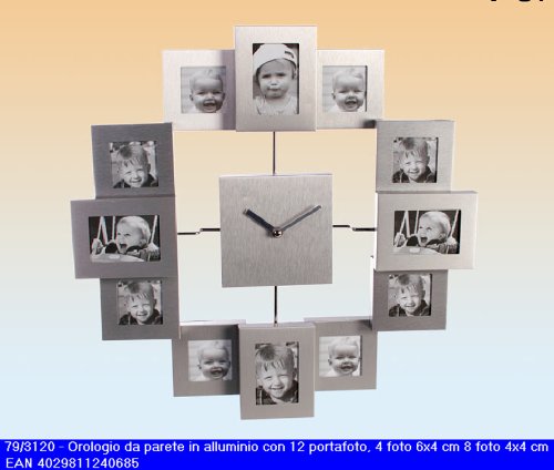 Orologio da parete in alluminio con 12 portafoto; misure 2 da 5 x 7, 2
